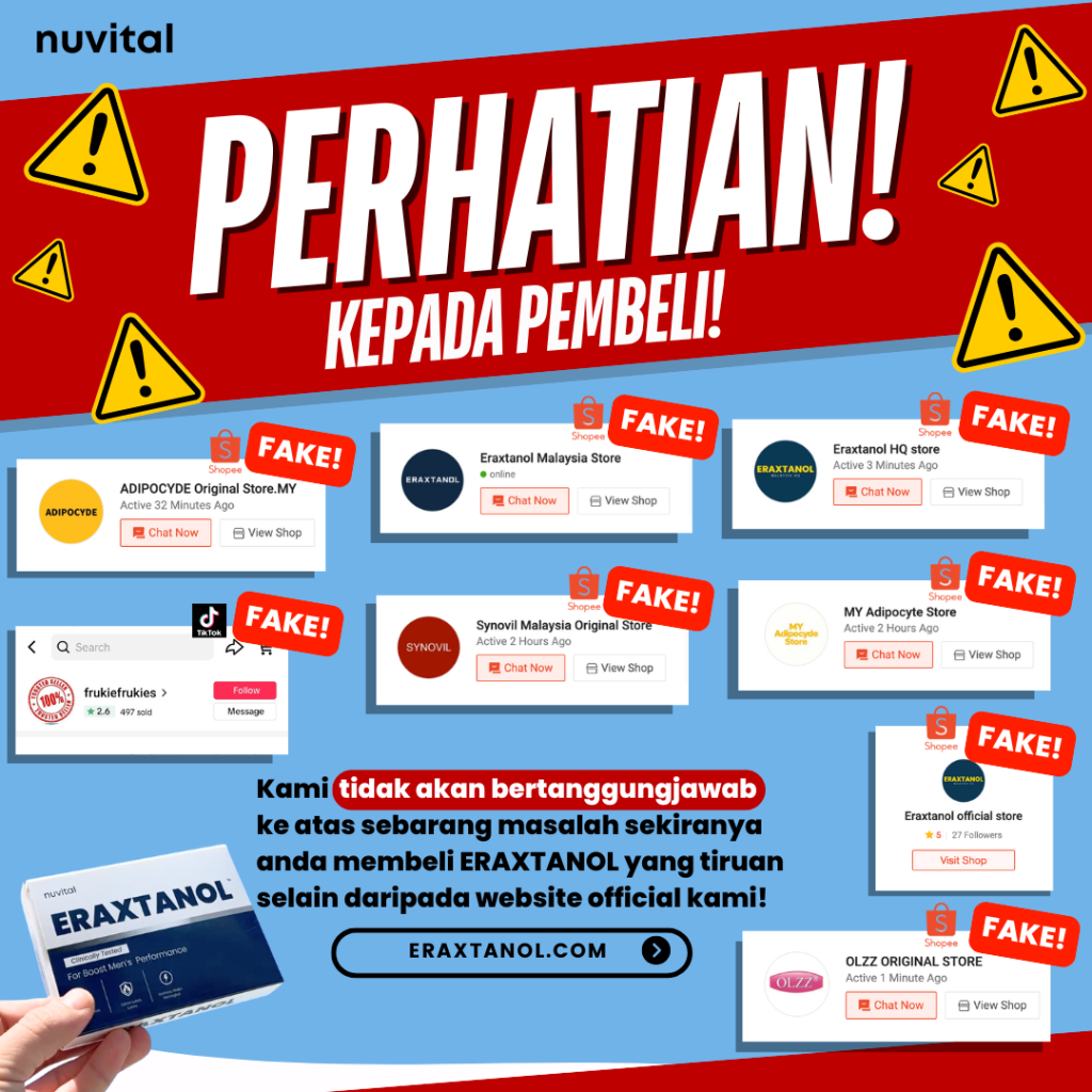 ➤ Eraxtanol hanya untuk kegunaan lelaki. Tidak sesuai untuk wanita.